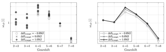 where and are the slip coefficients subject to identification and is the total power unit power, i.e., . More details on the longitudinal model and its validation can be found in [57]. Finally, the power unit is equipped with an eight-speed gearbox, i.e., . The overall transmission of the gear g from the engine shaft to the car’s wheel is denoted by . Therefore the engine speed whit the gear engaged is related to the velocity by