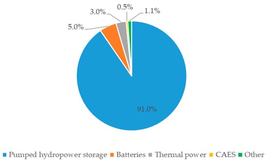 - International Energy Agency. Technology Mix in Storage Installations Excluding Pumped Hydro, 2011–2016. 2019. Available online: https://www.iea.org/data-and-statistics/charts/technology-mix-in-storage-installations-excluding-pumped-hydro-2011-2016 (accessed on 2 September 2020).