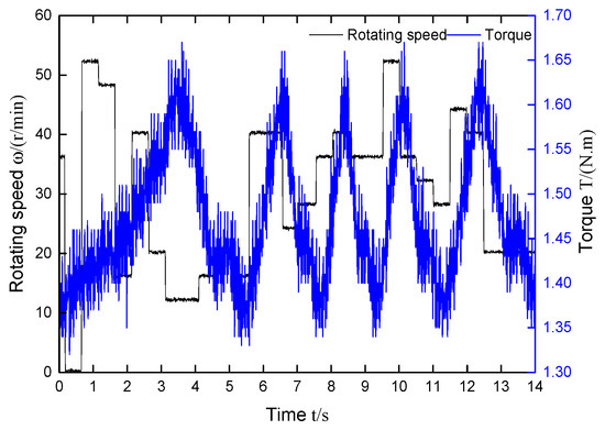In this experiment, data are collected by a scaled model data collection system, which is shown in Figure 9a,b. The acquisition system includes software and hardware, and the software window is designed with LabVIEW software programming. The system can collect important information regarding the torque, rotating speed, voltage, current and level change of the water inlet and outlet. The collection cycle is set at 0.01 s. To verify the feasibility of the fluid channel, which is designed based on the water oscillation mathematical model, the rotation speed and torque changes under the same operating conditions are analyzed to examine whether the model can operate under normal conditions. Normal operation shows that derivation from the water oscillation mathematical model is sufficient.