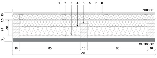 Horizontal section of the opaque ventilated façade module analyzed. The layers numbering refers to Table A1.