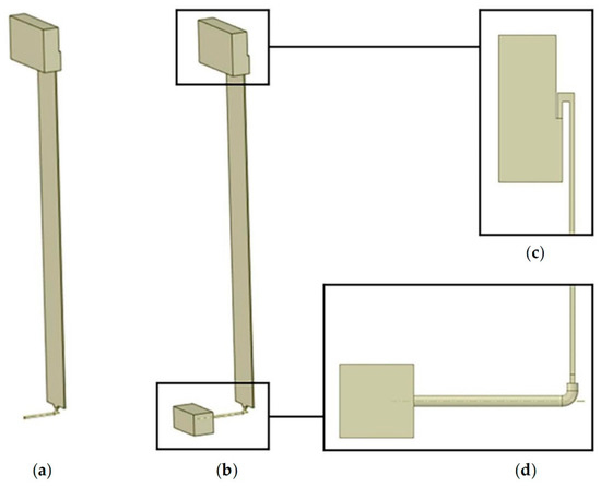 The façade has been modeled with the same geometry for all the operating conditions tested in the study, the only difference relies in the presence of the air volume at the inlet (inlet domain) of the underground duct, necessary to simulate the surrounding environment for the natural ventilation case [26]. This volume is not required in case of forced ventilation, where an air velocity value is imposed at the underground duct inlet. Both models include another air volume (outlet domain) for the simulation of the external environment at the top of the cavity. The volumes dimensions are 0.25 m3 for the inlet domain (equal to the ventilated cavity volume) and 0.67 m3 for the outlet domain. Figure 3 shows the 3D geometrical models used for the natural and forced ventilation simulations.