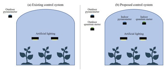 (a) The existing control open-loop including an outdoor sensor only. (b) The proposed control system.