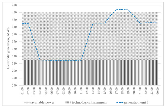 Figure 2 shows that depending on the power system demand, the electric capacity of the generating equipment of the unit was decreasing by more than 34%, and half of the unit was put into cold reserve (GTU, while heat recovery boiler (HRB)) and the unit was completely shut down.