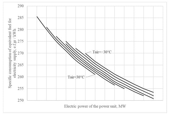 - The specific standard fuel consumption for electric generation in the condensation mode varies from 248 to 280 e.f.gr./kWh, and in the heating mode from 170 to 210 e.f.gr./kWh.