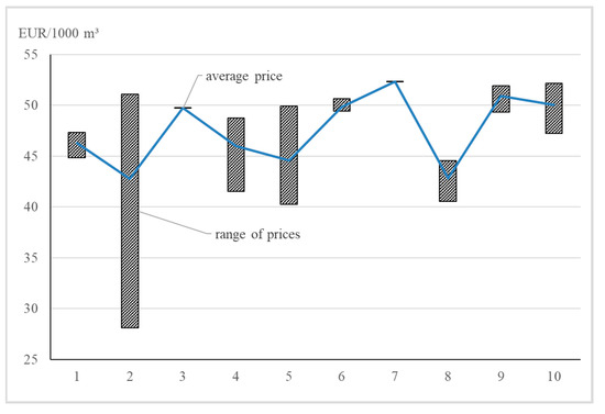 When calculating by Equation (10), it may be necessary to recalculate the values of energy prices. So the final price for natural gas must consider the actual volumetric heat of combustion according to the Equation (14):