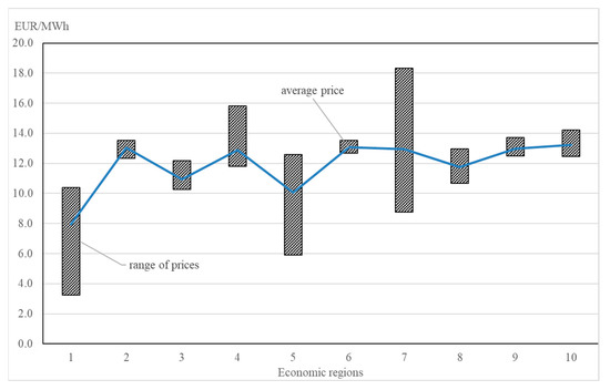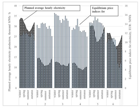 Energy companies may operate in different segments of the wholesale electricity market. The average annual electricity price for a particular TPP can be determined by the following Equation (16):