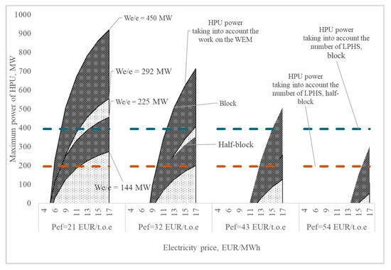 - To analyze the main factors’ influence on the choice of capacity of HPU within TPP under the work conditions of the wholesale electricity and capacity market.