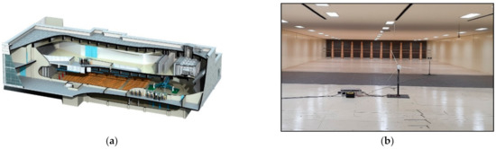 A wind tunnel test was conducted at a large wind tunnel test center (Jeolla-do, Korea) to verify the performance and applicability of the LQRF controller. The length, width, and height of the wind tunnel were 40 × 12 × 2.5 m. To make the wind tunnel test more realistic, the turbulence intensity that can be achieved in the wind tunnel which is approximately 10% was chosen. The turbulence intensity was realized with spire structures at the inlet of the wind tunnel. Figure 8 shows the configuration and view of the wind tunnel. Supervisory and power control of wind turbines were possible by linking a programmable logic controller, and real-time monitoring and control was performed with a sampling frequency of 250 Hz as it was connected to a personal computer (PC) and a local area network. The blade and tower root were equipped with a load measurement system by a strain gauge, and mechanical loss data obtained through a test bench was applied to the controller.