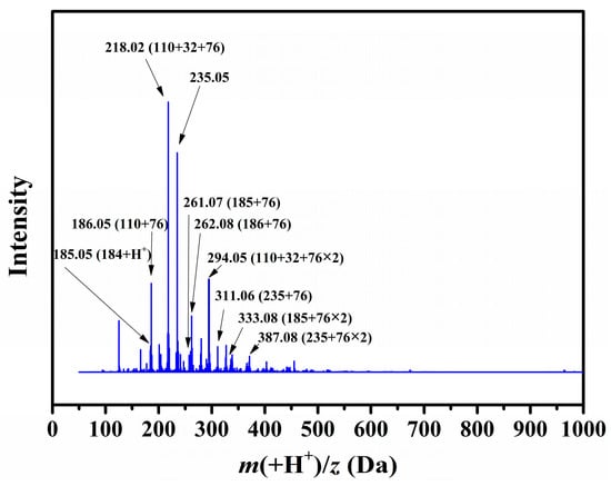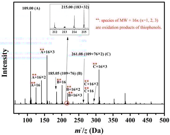 k = 0, 1, 2, 3) (in the positive mode), NaS‒substituted DBT (MW = 215) (in the negative mode), phenyl‒DBT with MW = 185 + 76 n (