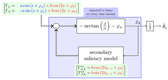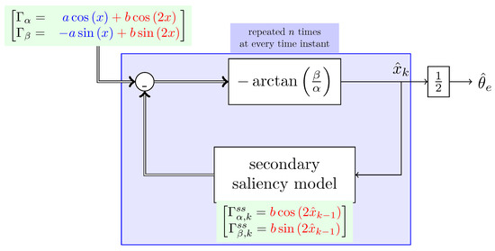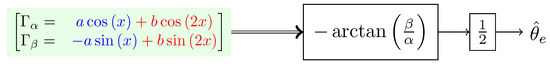 Starting from this point the term second harmonic will refer to the term . The position estimation procedure is summarized in Figure 3. The signals and can be generalized to fit the results of any other anisotropy-based sensorless technique. One can notice that the variable is equal to x only if the parameter b is zero. However, if b is not zero, we can determine the estimation error as follows: