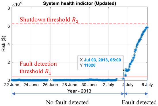 According to the aforementioned parameters, the fault detection threshold () of 9768.4 ($) was obtained. The shutdown threshold () was calculated in the online phase after a fault was detected and the fault type inferred.