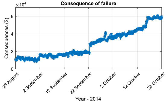 In our case, we assume that critical faults can be detected by condition monitoring and fault detection system. Therefore, when a fault not be detected, is given an initial value (), which is composed of inspection cost and production loss that are caused by shutdown inspection. When a fault is detected, the fault analysis scheme would analyze the cause of the fault and infer the fault type, hence, the value would be updated according to the possible fault type.