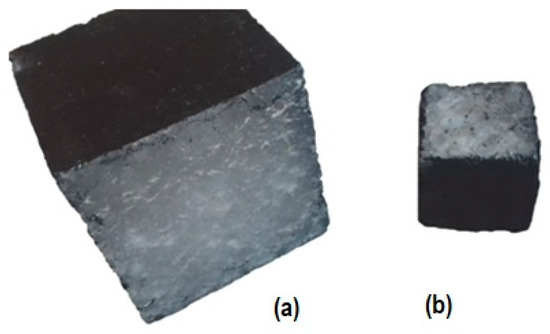 Example of cube-shaped samples (a) 100 × 100 mm, (b) 50 × 50 mm.