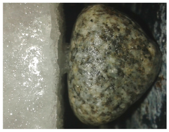 Experiments proved that as a result of the dissolving process on the contact between salt and aggregate, a salt bridge is formed (Figure 4), whose shape, depending on the experiment characteristics, is similar to a truncated cone or pyramid. Tests were conducted to determine the cone development mechanism and its geometrical parameters.