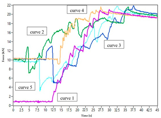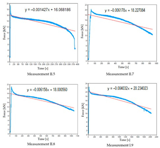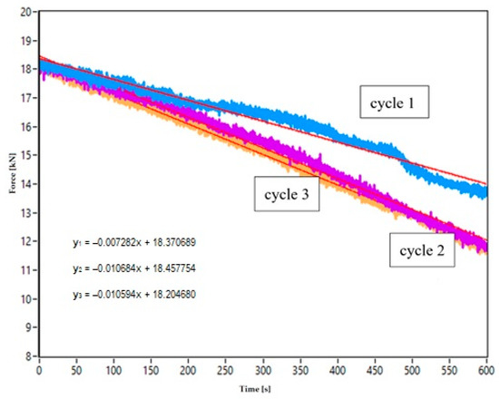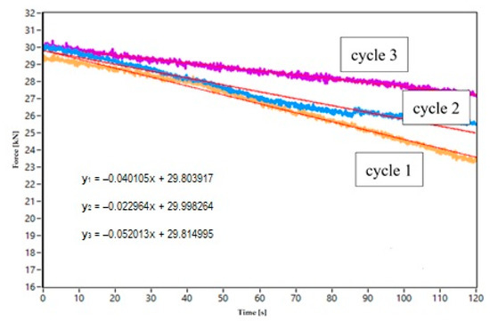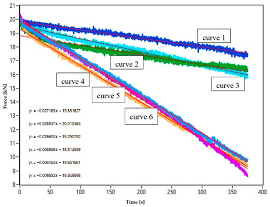 Measurements of the first load relaxation phase were chosen for the analysis, with an initial value within the range of 16–20 kN.