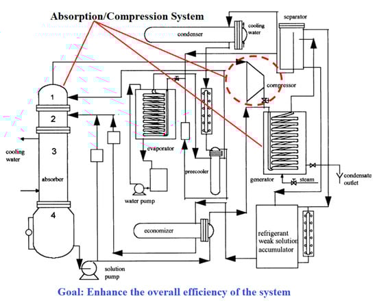 Absorption/compression refrigeration hybrid cycle. Adapted from Cai et al. [65] (Reprinted with permission from Elsevier).