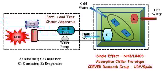 - Zacarías, A.; Quiroz, J.A.; Gutiérrez-Urueta, G.L.; Venegas, M.; Carvajal, I.; Rubio, J. Comparison between adiabatic and nonadiabatic absorption chillers using ammonia–lithium nitrate and water–lithium bromide solutions. Heat Transf. Res. 2020, 51, 609–621. [Google Scholar] [CrossRef]