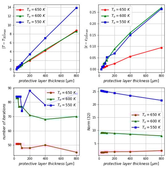 Results of calculations performed for the protective coating of a thickness of g = 30 μm are presented in Figure 4, Figure 5, Figure 6 and Figure 7.
