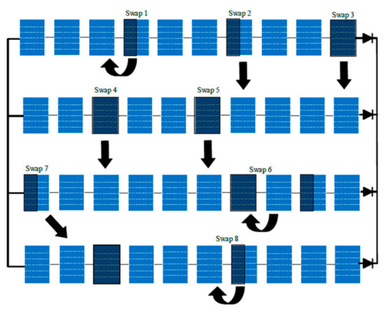 An example of the offline reconfiguration to swap PV modules through human labor in location.