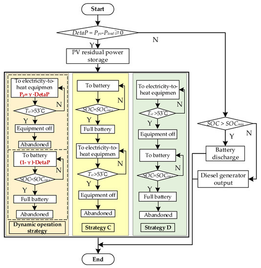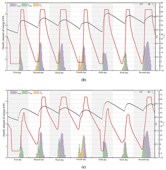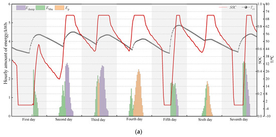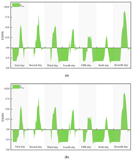 29] optimized the running strategy of a residential cogeneration system by introducing and discussing the effect of a hypothetical CHP system for a detached house. Based on the seasonally electricity and thermal load characteristics, several annual running strategies were established, considering the cogeneration equipment efficiency (electricity generation and thermal recover efficiencies). Then, the effect of the running strategy was evaluated from the perspective of energy saving, energy cost, and environmental effects. Considering the regular change trend of renewable energy output and user energy demand during the simulation cycle, it is also common to research on improving the overall performance of the system by switching operating strategies under different conditions. For example, Qiu et al. [