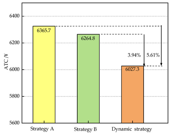 (1) The difference between peak and valley time-of-use electricity prices has a great impact on the selection of the optimal operation strategy for the grid-connected system. When the difference between peak and valley time-of-use electricity prices is large, the economic performance of the system under the dynamic operation strategy is significantly improved: In scenario 3, in which the difference between peak and valley time-of-use electricity prices is 0.75 ¥/kWh, the dynamic operation strategy achieves a saving of 5.61% in ATC compared with strategy A and a saving of 3.94% compared with strategy B.