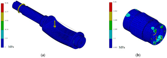 The results of the calculation of equivalent stresses in unbalanced masses: (a) inner unbalanced shaft, (b) outer unbalanced housing.