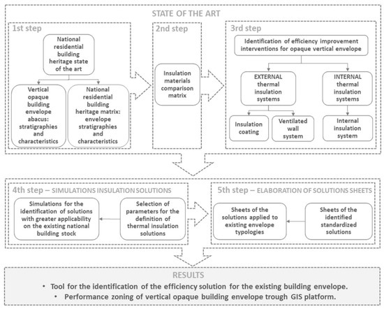 An outline of the methodology developed to obtain a tool for the identification of the efficiency solution for the existing building envelope, is shown in Figure 1.