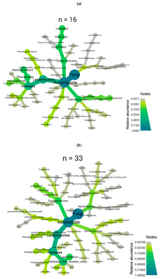 - Foster, Z.S.; Sharpton, T.J.; Grünwald, N.J. Metacoder: An R package for visualization and manipulation of community taxonomic diversity data. PloS Comput. Biol. 2017, 13, e1005404. [Google Scholar] [CrossRef] [PubMed]