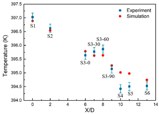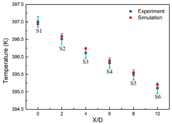 4.2. Comparison of Fluid Temperature between Experiment and Simulation