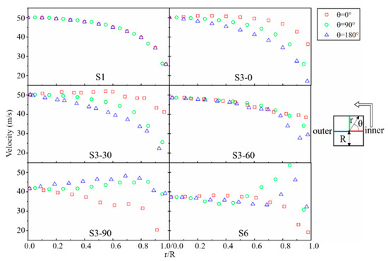 4.3.2. Radial Profiles of Velocity and Temperature for Various Cross-Sections