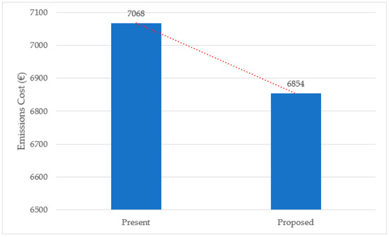 Regarding , it is obtained by multiplying the tons previously calculated in Equation (4) by the cost per ton of CO2 emissions during the period considered (2014).