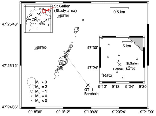 - Diehl, T.; Kraft, T.; Kissling, E.; Wiemer, S. The induced earthquake sequence related to the st. gallen deep geothermal project (Switzerland): Fault reactivation and fluid interactions imaged by microseismicity. J. Geoph. Res. Solid Earth 2017, 122, 7272–7290. [Google Scholar] [CrossRef]
