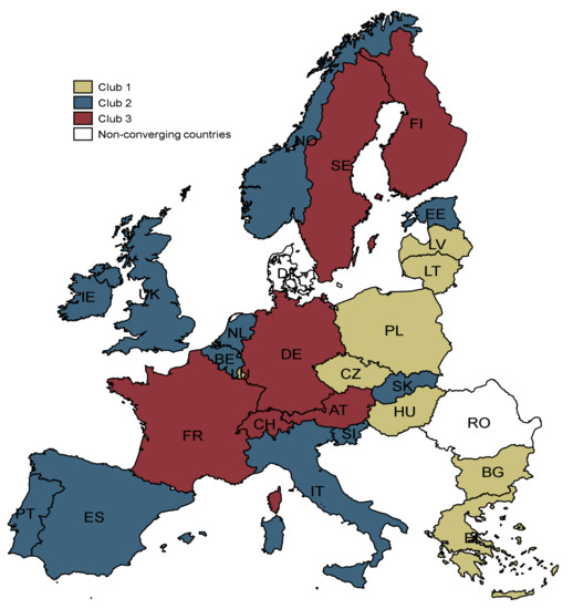 The existence of convergence clubs suggests a persistently uneven contribution of their ‘members’ to the collective effort of combating climate change. Such disproportions might, in turn, increase the overall costs of achieving the energy-related goals of environmental policy adopted by the European countries [35].