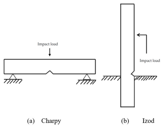 (a) Charpy (beam load) and (b) Izod (cantilever beam load). Adapted from [77].
