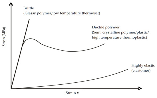 Stress–strain curves of various polymeric materials. Adapted from [77].