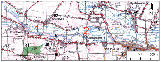 Location of potential SHPP Jaksice (1) and Jazdowiczki (2).