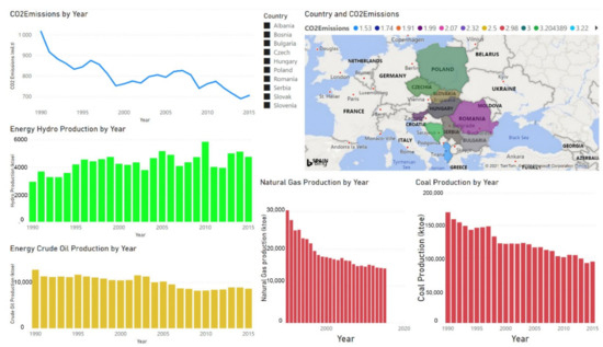 Figure 4 presents a country level dashboard describing the CO2 emissions together with the different types of energy production.