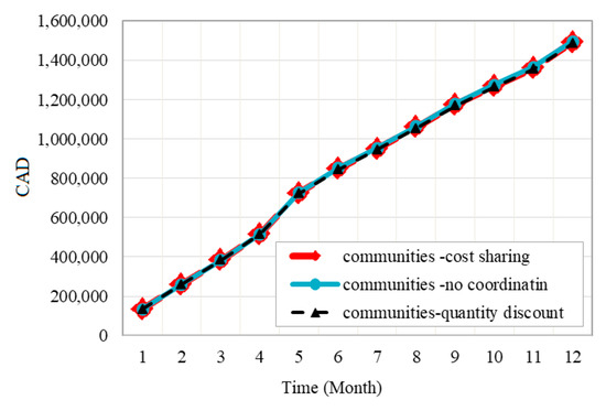 and : Cumulative cost of communities at time “t”—(CAD) and : Cost of communities at time “t”—(CAD/month).