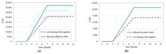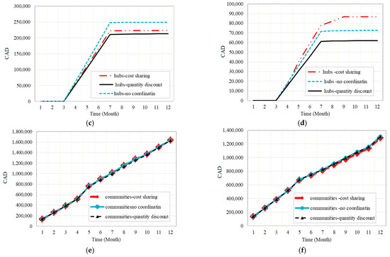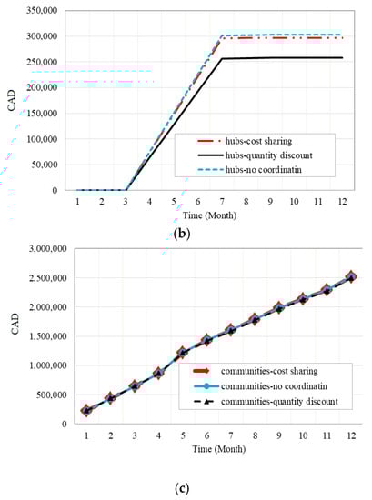 and : Cumulative cost of hubs at time “t”—(CAD) and : Cost of hubs at time “t”—(CAD/month).