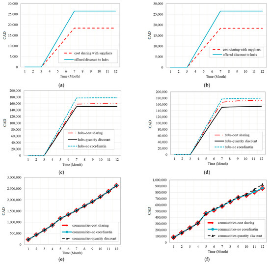 The cost amount shared with hubs is deducted from the communities’ overall cost and added to hubs’ overall cost. Similarly, the amount of shared cost with the suppliers is subtracted from the cost of hubs. Accordingly, the cost of hubs and communities are presented in Equations (19) and (20), respectively: