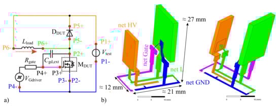 - Kovacevic-Badstuebner, I.; Grossner, U.; Popescu, D. Tools for Broadband Electromagnetic Modeling of Power Semiconductor Packages and External Circuit Layouts. In Proceedings of the 32nd International Symposium on Power Semiconductor Devices and ICs (ISPSD), Vienna, Austria, 13–18 September 2020; pp. 388–391. [Google Scholar] [CrossRef]