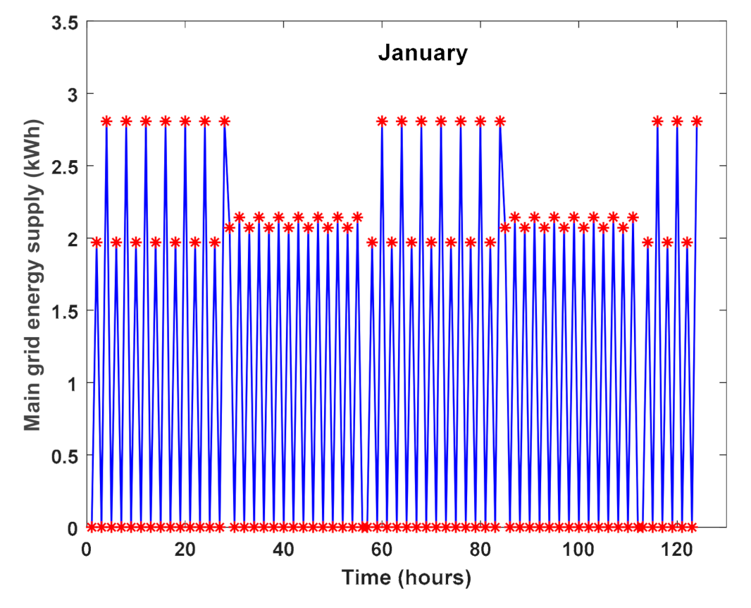 - When the main grid is off, the total energy demand is supplied by the PV system.