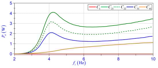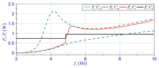 Figure 14 shows the active power as a function of the amplitude . It should be noted that the amplitude is a function of frequency (see Figure 15).