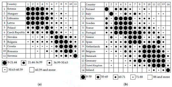 Similarity of EU Member States in terms of renewable energy production structure (by source) as of 2018: (a) Countries that joined the EU in 2004 or later, (b) Countries that joined the EU before 2004. Own study based on [49].