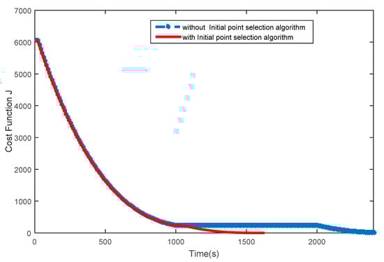 The cost function comparison of with and without the initial point selection algorithm.