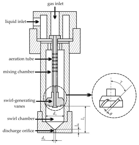 - Ochowiak, M. Koncepcja atomizera pęcherzykowo-wirowego z analizą oporów przepływu. Inżynieria Apar. Chem. 2012, 51, 360–361. [Google Scholar]