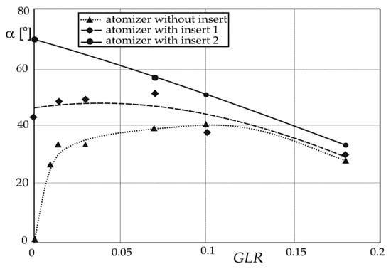 - Chen, S.K.; Lefebvre, A.H. Spray cone angles of effervescent atomizers. At. Sprays 1994, 4, 291–301. [Google Scholar]