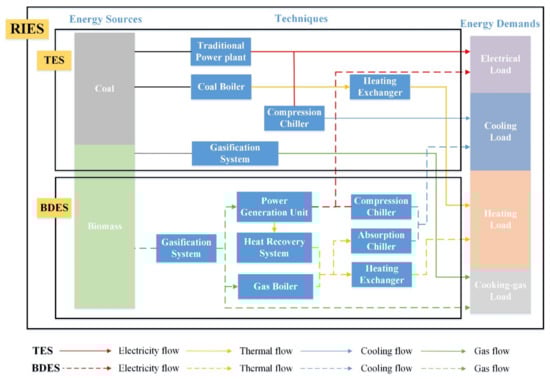 - Ren, H.; Zhou, W.; Nakagami, K.I.; Gao, W. Integrated design and evaluation of biomass energy system taking into consideration demand side characteristics. Energy 2010, 35, 2210–2222. [Google Scholar] [CrossRef]