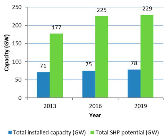 Worldwide SHP installed vs. potential capacity [24].