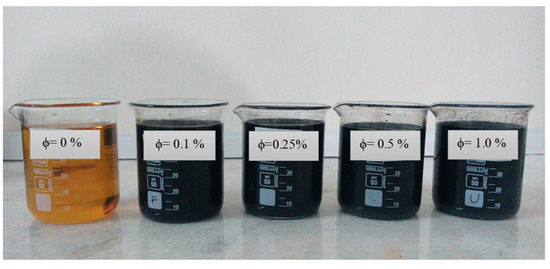 The method of preparing nanofluids influences the quality of dispersed nanoparticles in the base fluid. It is crucial to prevent the agglomeration of nanoparticles during the preparation process [22,23]. Instability and accumulation due to the intermolecular forces in nanoparticles cause variations in the thermophysical properties of nanofluids [24].